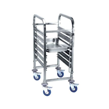 Ideal para transportar múltiples bandejas de forma segura y organizada, facilitando la eficiencia en la cocina o el área de servicio.