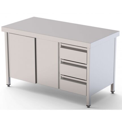 Cada una de nuestras mesas de trabajo de acero inoxidable está diseñada para soportar el uso intensivo, garantizar la durabilidad y facilitar la limpieza, contribuyendo a un entorno de trabajo más eficiente y profesional en el sector de la hostelería.