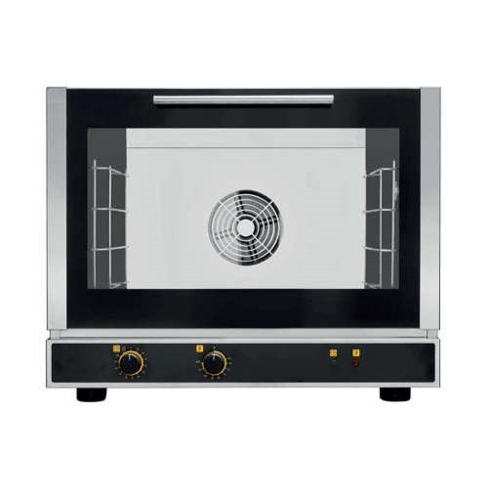 • Fabricados en Italia por fabricante de reconocido prestigio mundial que exclusivamente fabrica hornos. • Construidos en acero inoxidable en interior y exterior. • Posee las certificaciones más exigentes IPX3 y CB. • Control de temperatura por termostato de 50 a 300°C. • Panel de mandos electromecánico inferior. • Puerta ventilada con vidrio inspeccionable y apertura abatible. • Motor ventilador monodireccional o bidireccional según modelo. • Sistema de refrigeración forzado de los componentes internos. • Posibilidad de superposición. • Paso de guías de 83 mm. • Bandejas o parrillas no incluidas. • EKF464P: Un horno versátil y funcional de dimensiones limitadas. Un instrumento realmente eficaz para hacer pasteles y pequeñas tarta