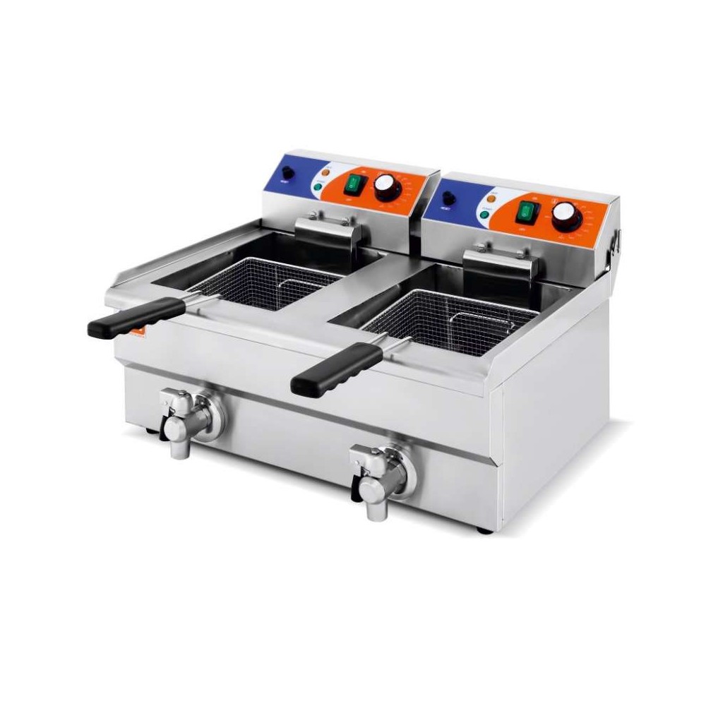• Diseñada para uso profesional. Ideal para tu restaurante o bar, con ella ofrecerás extraordinarias experiencias gastronómicas. • Fabricada en acero inoxidable de alta calidad, por lo que es resistente a la corrosión. • El termostato de alta sensibilidad regula el calor de la cuba de aceite de manera constante a la temperatura seleccionada hasta 190°C. No solo garantiza una alta seguridad sino también una alta longevidad del dispositivo. • Equipadas con contactor. • Alta seguridad gracias a su termostato de seguridad con corte a 210°C con rearme manual desde el exterior, y por su micro interruptor de seguridad que evita que la resistencia siga funcionando cuando se extrae el cabezal. • Resistencias blindadas de acero inoxidable de alto rendimiento y potencia que permite a la freidora llegar rápidamente a la temperatura óptima de trabajo. • Interruptor de encendido / apagado para controlar la fuente de alimentación principal y la luz indicadora de estado “ON”. • Cuba de aceite extraíble con bordes redondeados, lo que facilita enormemente la limpieza. • El vaciado de aceite se realiza de manera sencilla y rápida mediante el grifo integrado. • Equipada con patas de goma antideslizantes que proporcionan mayor estabilidad. • Incluye tapa de acero inoxidable.
