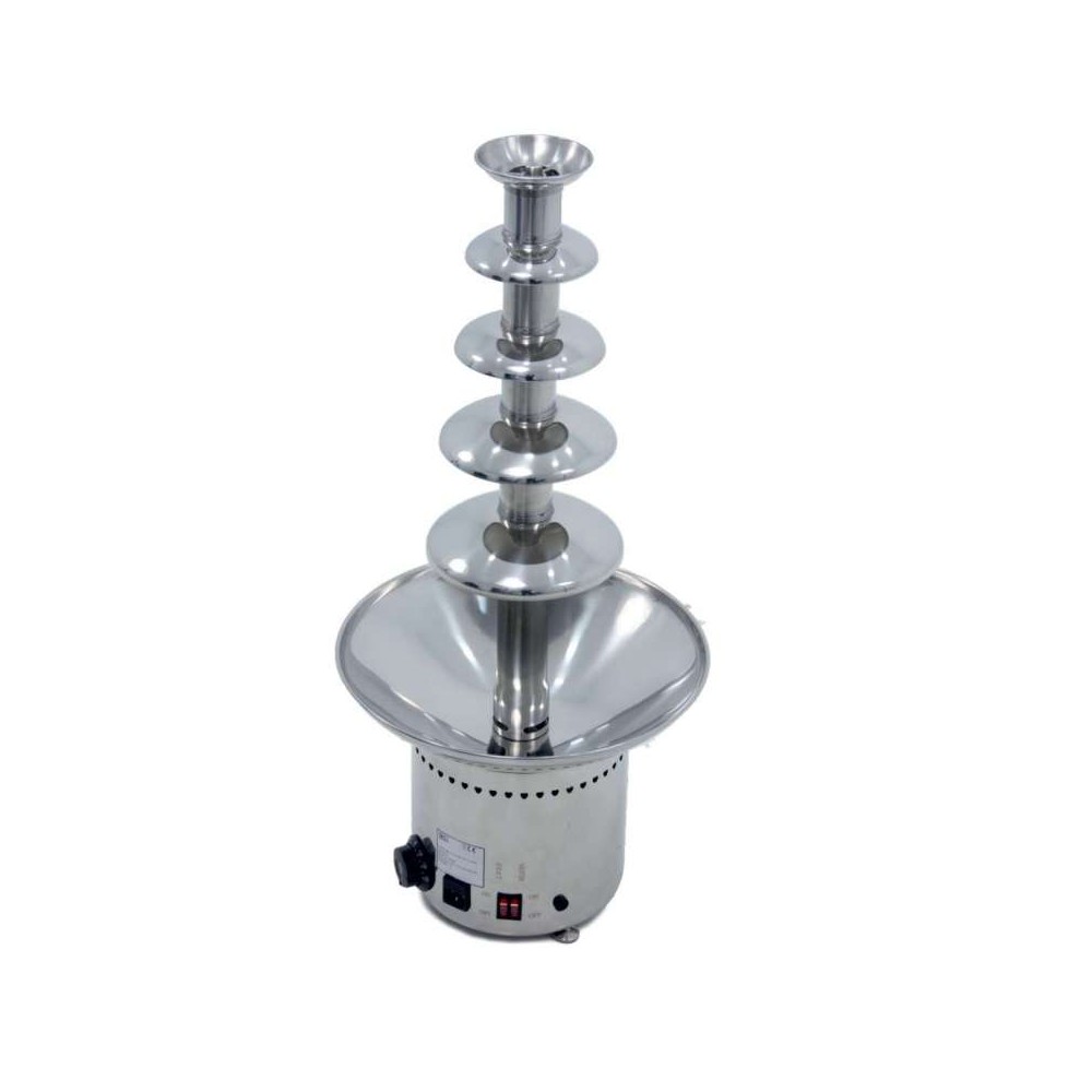 • Ideal para empresas de catering, restaurantes, hoteles y eventos como, por ejemplo, bodas, cumpleaños, banquetes y otras celebraciones. • Gracias a su alta capacidad, esta fuente de chocolate puede procesar de 5 a 8 Kg al mismo tiempo (según modelo). Es posible emplear ingredientes como chocolate, caramelo, salsa, sirope, queso fundido, etc. • Conforme a tus preferencias, podrás endulzar bajo la cascada diversos productos, entre otros frutas, galletas, tortitas, gofres, donuts, helados o mousse. • Diseño de tornillo que permite que el chocolate fluya libremente y evita obstrucciones. • Protección contra sobrecalentamiento integrada garantiza la seguridad durante el funcionamiento del aparato y lo interrumpe en caso de que la temperatura sea excesiva. • Aberturas de ventilación en la base contribuyen a la refrigeración del motor. • Dispone de dos mandos que controlan el motor y el elemento calefactor de forma separada. • El empleo de acero inoxidable en su fabricación posibilita su fácil limpieza. La fuente se puede desmontar fácilmente para limpiar así cada componente por separado. • Pies antideslizantes, ya que no dañan la superficie sobre la que se asientan, manteniendo la estabilidad necesaria. • Elemento calefactor eficiente para calentamiento rápido.