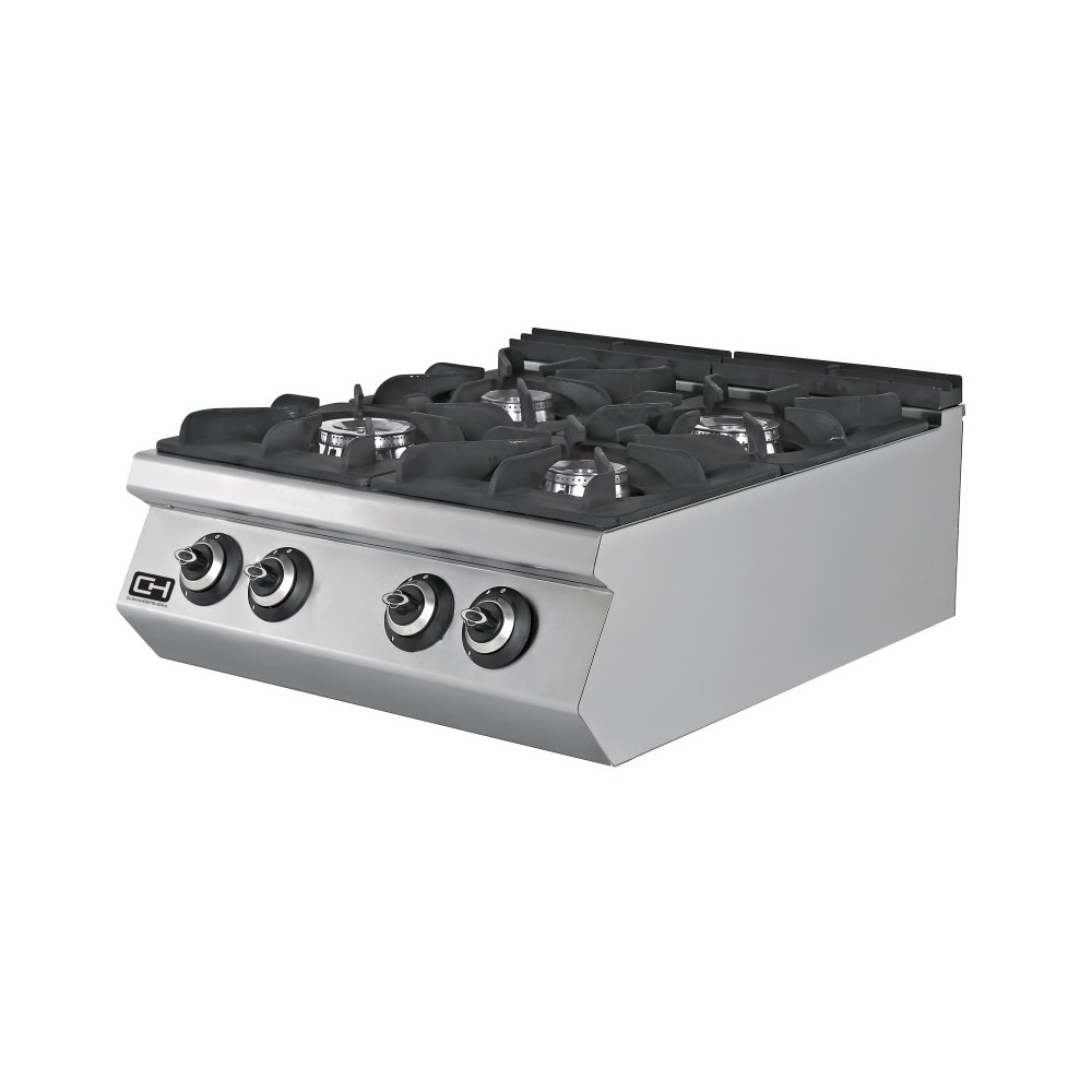 • Quemadores de doble corona de alta potencia y eficiencia equipados con termopar y llama piloto.