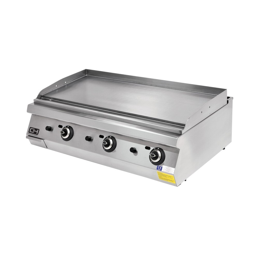 • Placa de cocción de acero rectificado de 12 mm. de espesor con peto en acero inoxidable soldado desde la parte superior que asegura su estanqueidad y facilita la labor de limpieza diaria.