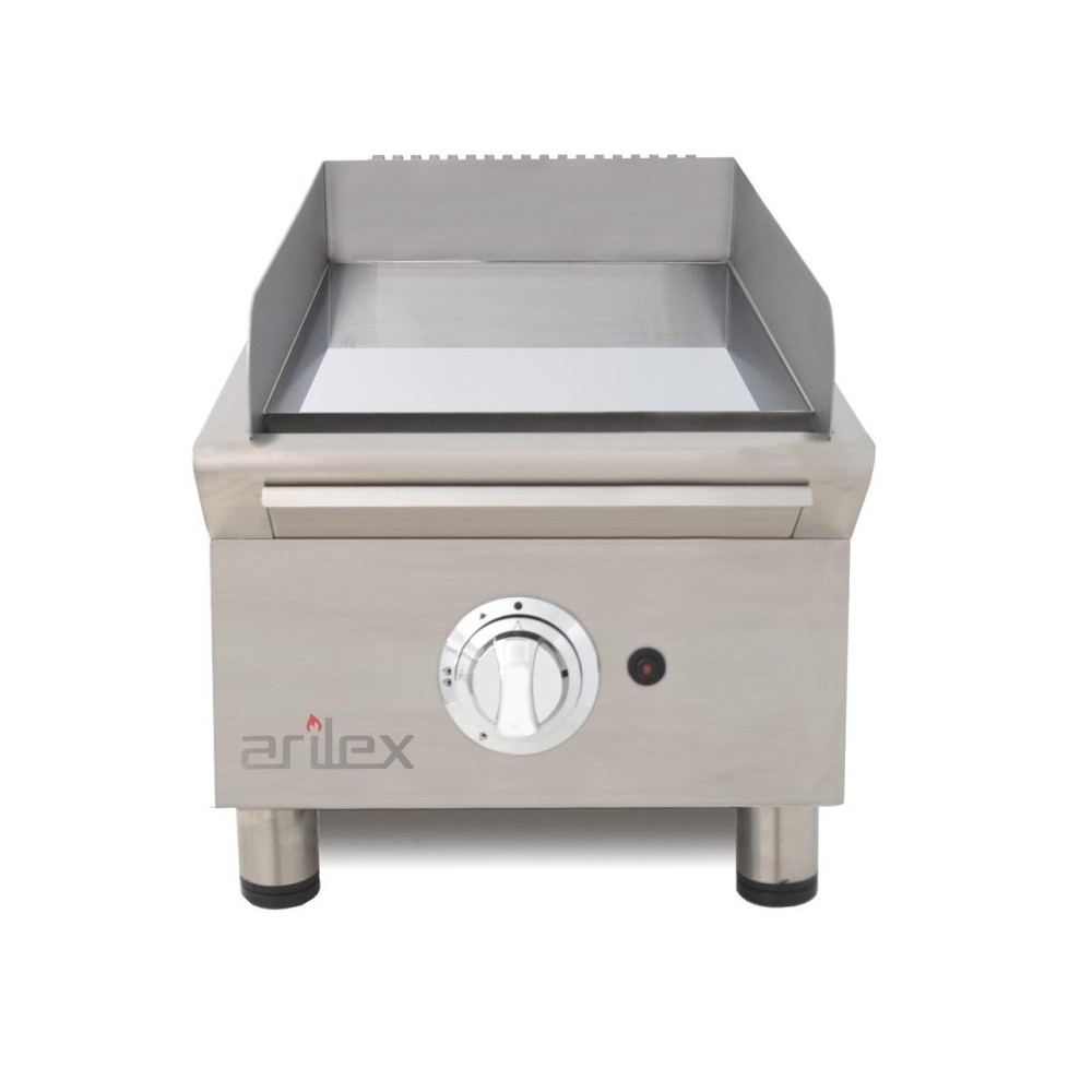 • Placa de asar de 15 mm de espesor. Peto de 100 mm de altura y 2 mm de espesor soldado por la parte superior evitando de este modo la acumulación y filtrado de grasas entre placa y petos. Fabricada en acero con baño de cromo duro de 50 micras.