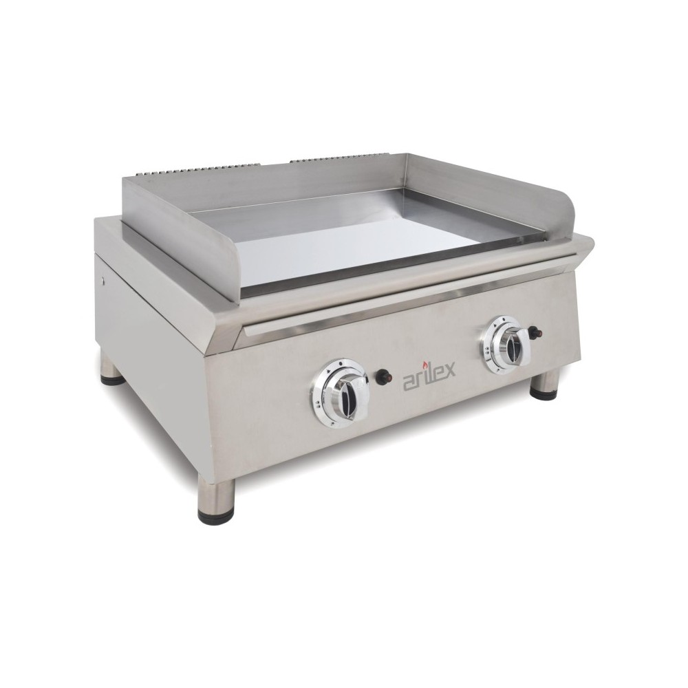 • Placa de asar de 15 mm de espesor. Peto de 100 mm de altura y 2 mm de espesor soldado por la parte superior evitando de este modo la acumulación y filtrado de grasas entre placa y petos. Fabricada en acero con baño de cromo duro de 50 micras.