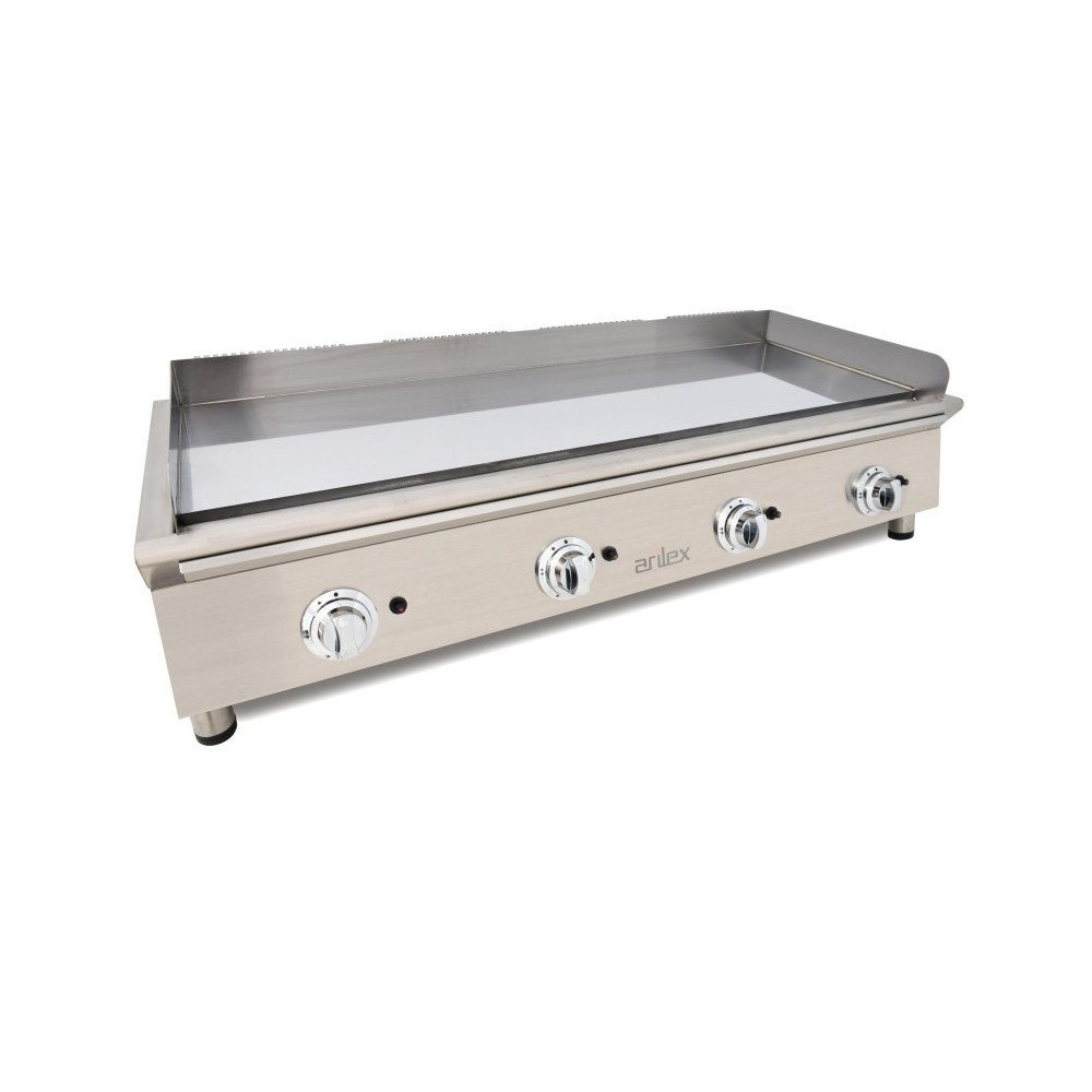 • Placa de asar de 15 mm de espesor. Peto de 100 mm de altura y 2 mm de espesor soldado por la parte superior evitando de este modo la acumulación y filtrado de grasas entre placa y petos. Fabricada en acero con baño de cromo duro de 50 micras.