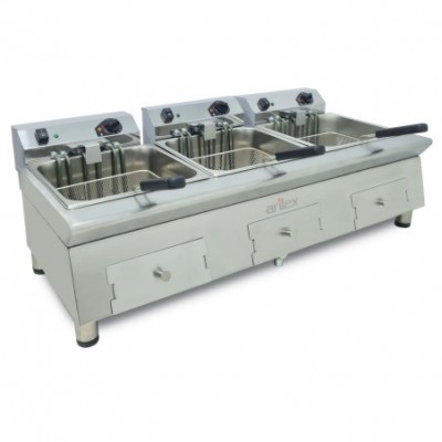 • ”Zona fría” donde se depositan los restos de los alimentos fritos por debajo de la resistencia. Así no vuelven a calentarse ni se mezclan con las siguientes frituras evitando la mezcla de sabores.