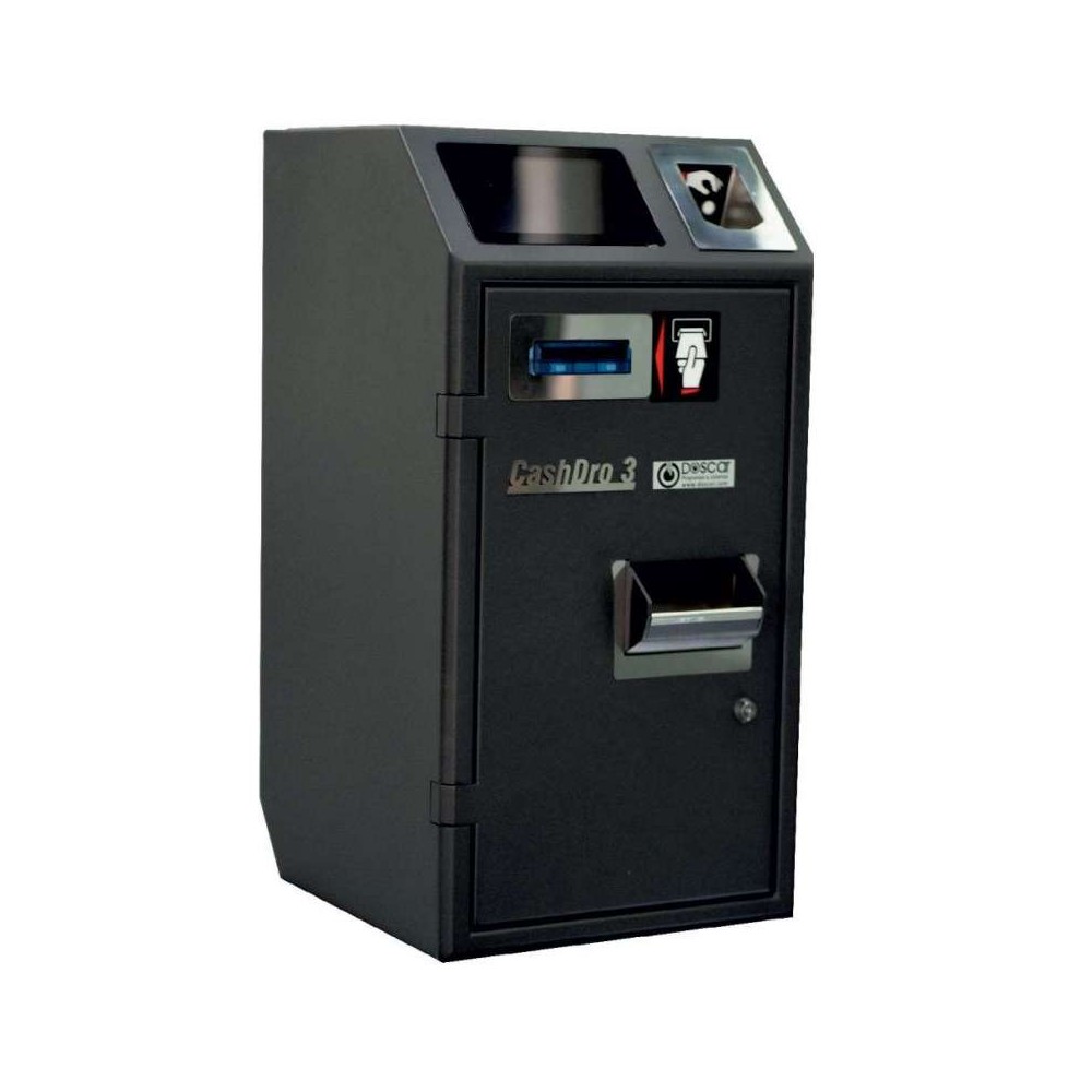 CashDro es un cajón inteligente de gestión de efectivo en el punto de venta de los establecimientos. • Reduce el contacto con el dinero como portador de gérmenes y materiales que pueden producir alergias. • Un solo equipo compacto para gestionar tanto billetes como monedas. • Acepta, valida y dispensa monedas de 2 céntimos a 2 euros. • Acepta, valida y dispensa billetes de 5 a 500 euros. • Tolva para carga rápida de monedas. • Carga y validación de billetes. • Rechaza billetes y monedas falsos. • Velocidad validación de monedas: 4 monedas / segundo. • Velocidad dispensación de monedas: 12 monedas / segundo. • Capacidad del reciclador de monedas: 1.500. • Capacidad del depósito de monedas: 1.500. • Capacidad del casete de billetes: 1.000. • Sistema anti palanca. • Pantalla táctil 7". • Conexión por Ethernet. • Compatible con software Doscar. • Puede trabajar con uno o varios TPVs, Tablets o Smartphone desde cualquier distancia. • Sistema anclaje mostrador en CASHDRO3. • Sistema de apertura retardada en CASHDRO5. • Fácil de integrar en mostradores.