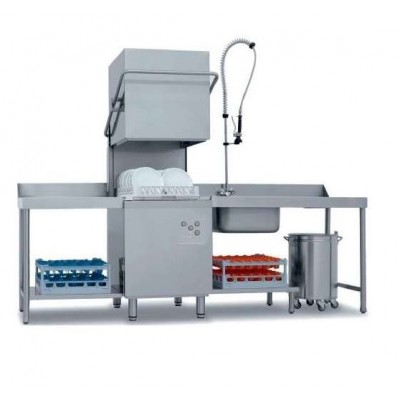 Lavavajillas de capota con apertura útil de 44 cm. La conformación de la cámara de lavado permite que se laven bandejas GN y EURONORM.