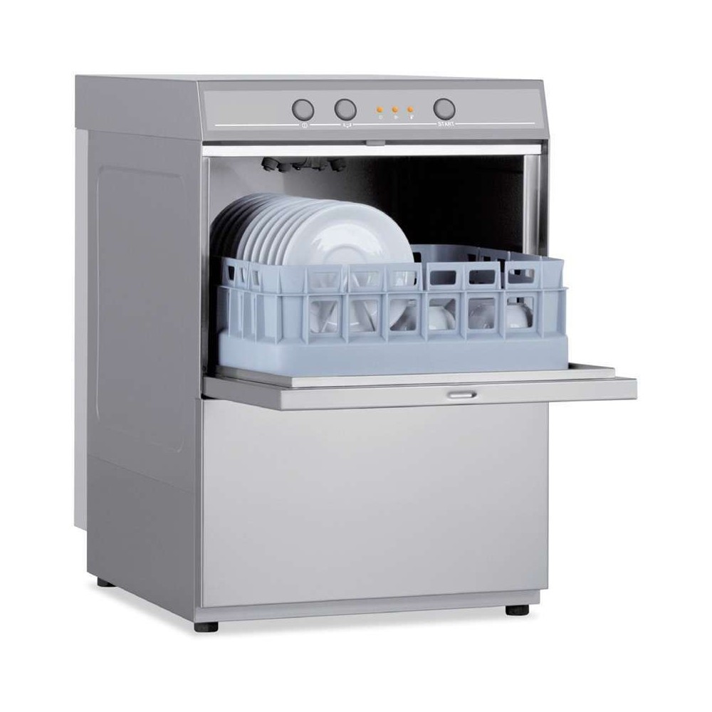 • Lavavasos / lavaplatos muy compacto fabricado en acero inoxidable. • Fabricado en Italia por líder europeo con mas de 1 millón de unidades funcionando en el mundo. • Calidad, fiabilidad, durabilidad y bajo consumo. • Puerta de doble pared aislada que lo hace muy silencioso. • Brazos de lavado y de aclarado superiores e inferiores con tecnología EQUALIZER. • Bomba de doble flujo. • Filtro bomba de material plástico antigolpes. • Sistema de desagüe de tecnología especial que mejora la eficiencia del recambio de agua de la cuba de más del 25%, manteniéndola más limpia y consumiendo menos detergente. De esto modo los costes operativos se reducen. • Se usan fácilmente gracias a la interfaz con mandos electromecánicos, al ciclo de lavado de uso general de 120 segundos y a la gran sencillez a la hora de desmontar y volver a montar los brazos de lavado y aclarado, así como el filtro de la cuba. • Consumo agua por ciclo: 1,9 litros. • Presión de agua apto funcionamiento: 2-4 bares. • Capacidad de la cuba: 9 litros. • Temperatura de lavado: 60°C. • Temperatura de aclarado: 65°C. • Altura del desagüe al suelo: 5 cm. • Potencia resistencia de la cuba: 600W. • Potencia resistencia del calderín: 2600W. • Dosificador electrónico de abrillantador incluido. • Equipado con bomba de desagüe en modelo CH400B. ACCESORIOS INCLUIDOS: • 2 Cestos de vasos 39x39 cm. • 1 Cesto de cubiertos. • 1 Tubo de carga. • 1 Tubo de desagüe.