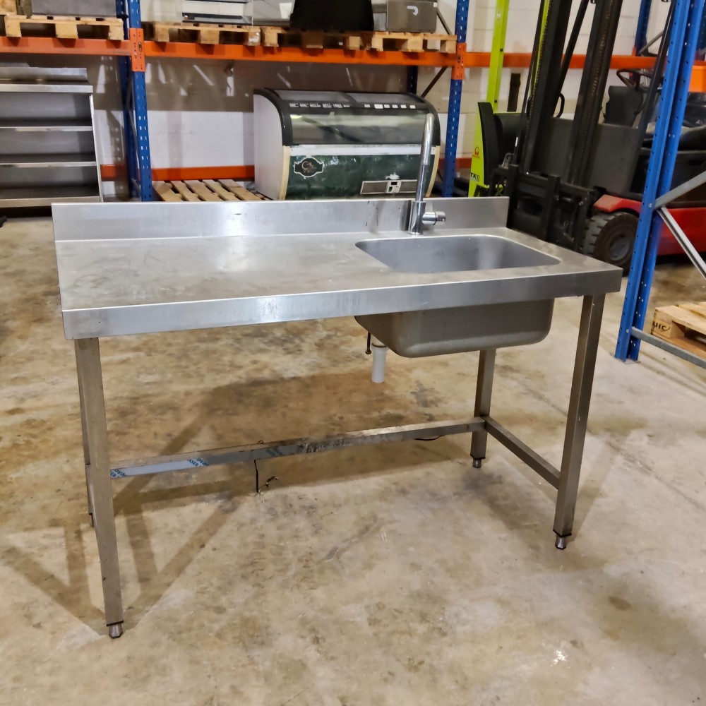 Fregadero de cocina de acero inoxidable con patas. MEDIDA 1400 X 600 X 850 MM ALTO - Fabricado en acero inoxidable. - Incluye grifo. - Estructura metálica resistente. TELF: 671 948 454