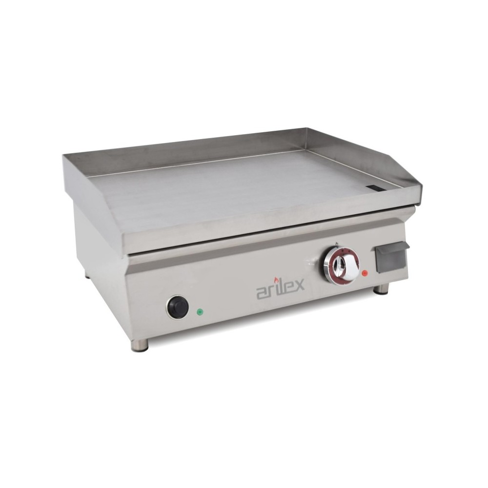• Placa de asar de 15 mm de espesor. Peto de 80 mm de altura. Fabricada en acero rectificado con tratamiento antioxidación.