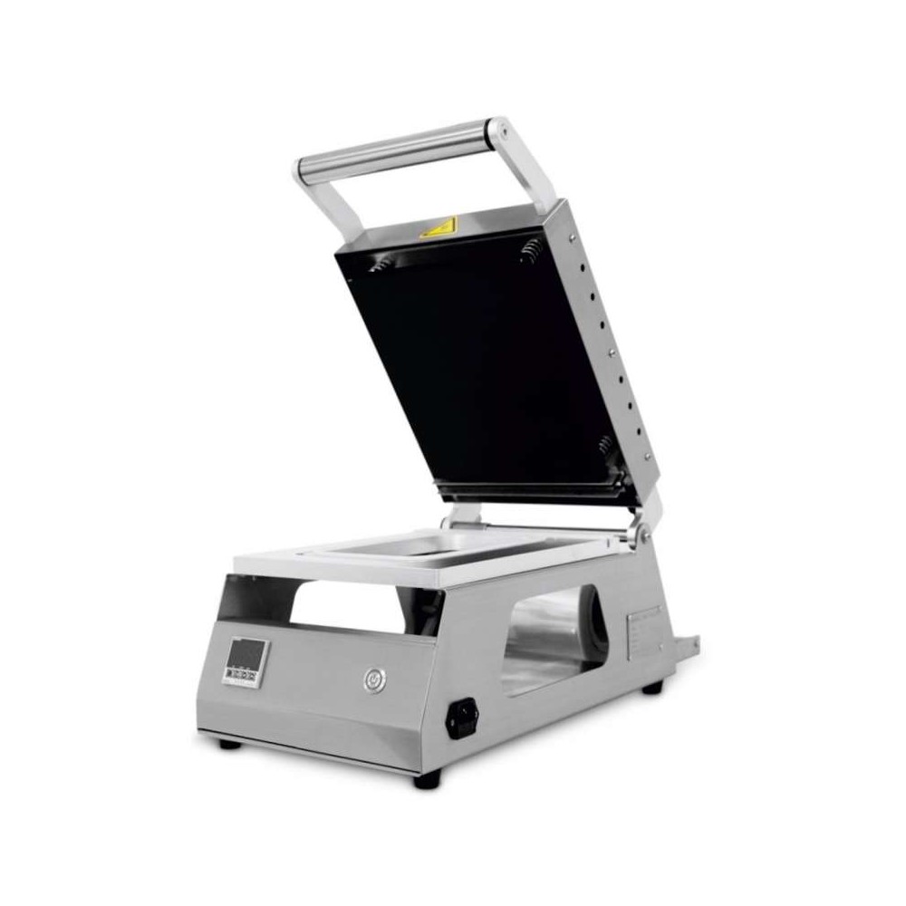 • Especialmente indicadas para el transporte de alimentos elaborados o en curso. • Permiten el transporte del producto sin pérdidas ni derrames. • Chasis construido en acero inoxidable. • Control electrónico de la temperatura y tiempo de soldadura para sellar perfectamente las bandejas. • Sellado y corte simultáneos. • Placa de sellado fabricada en una sola pieza, plana y con muelles para garantizar el mejor sellado. • Moldes intercambiables manualmente, sin necesidad de herramientas, y con la máxima rapidez. (NO INCLUIDOS). • Modelo compacto de uso sencillo y tamaño reducido. • Cuenta con un sistema de frenado de retroceso del film que facilita su utilización. • Soldadura perfecta aún con la presencia de líquidos y grasas. • Apto para bobinas de film de máximo 300 metros de longitud, 160 mm. de diámetro y 180 mm. de ancho
