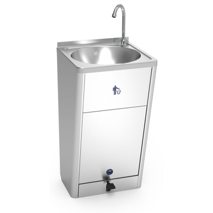 •Fabricado en acero inoxidable AISI 304, este lavamanos es completamente autónomo, ya que para su funcionamiento no precisa tomas de agua, ni desagüe ni electricidad.